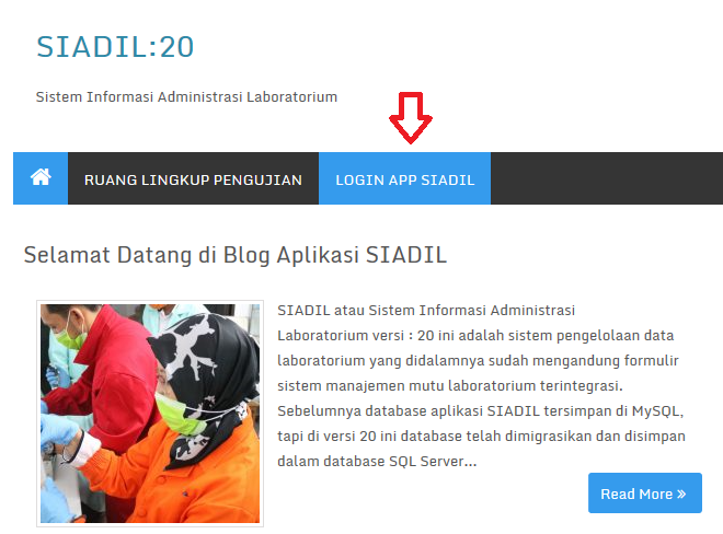 1. Pilih atau klik menu “LOGIN APP SIADIL” pada menu navigasi
